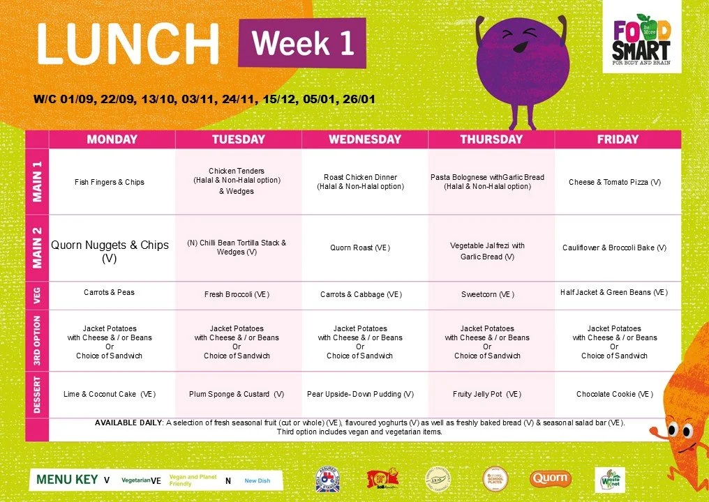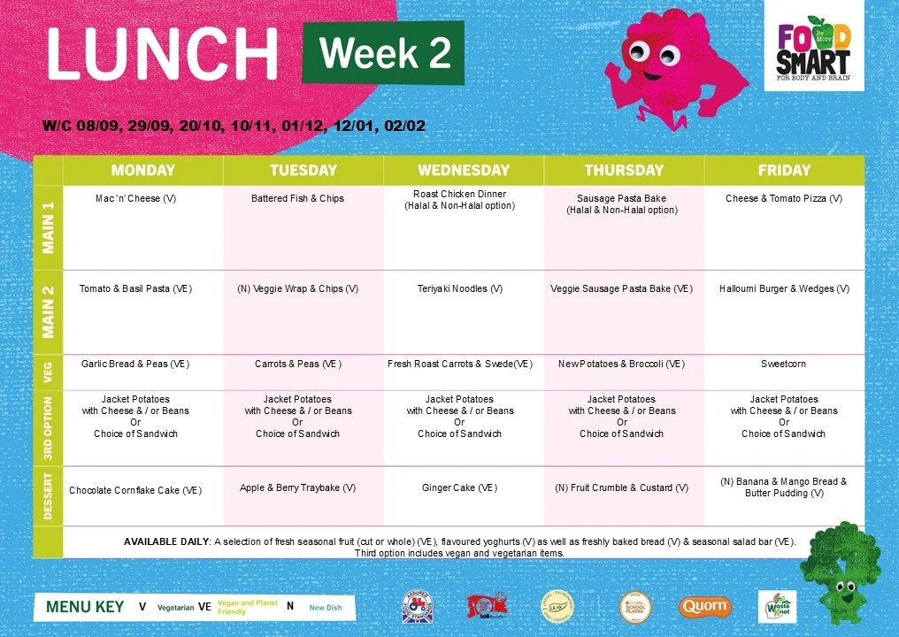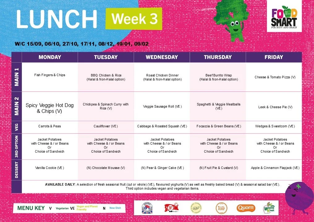 Menus will operate on a three-week rotation. You have until 9am on the morning of each school day to pre-order your child’s lunch. If a meal hasn’t been pre-ordered you will need to provide your child with a packed lunch for that day. We recommend making the meal choices alongside your child, so they are aware of what has been ordered. Meals will need to be paid for at the time of pre-ordering. In the event of your child not bringing in a packed lunch and not pre-ordering a meal, a jacket potato or sandwich option will be given.